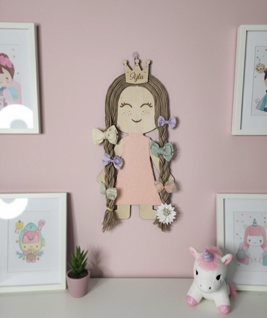 Die Haarspangen-Aufbewahrung ist nicht nur praktisch, sondern auch ein wunderschönes Wanddekor. Kinder können ihre Lieblingsspangen selbst anbringen und behalten immer den Überblick.