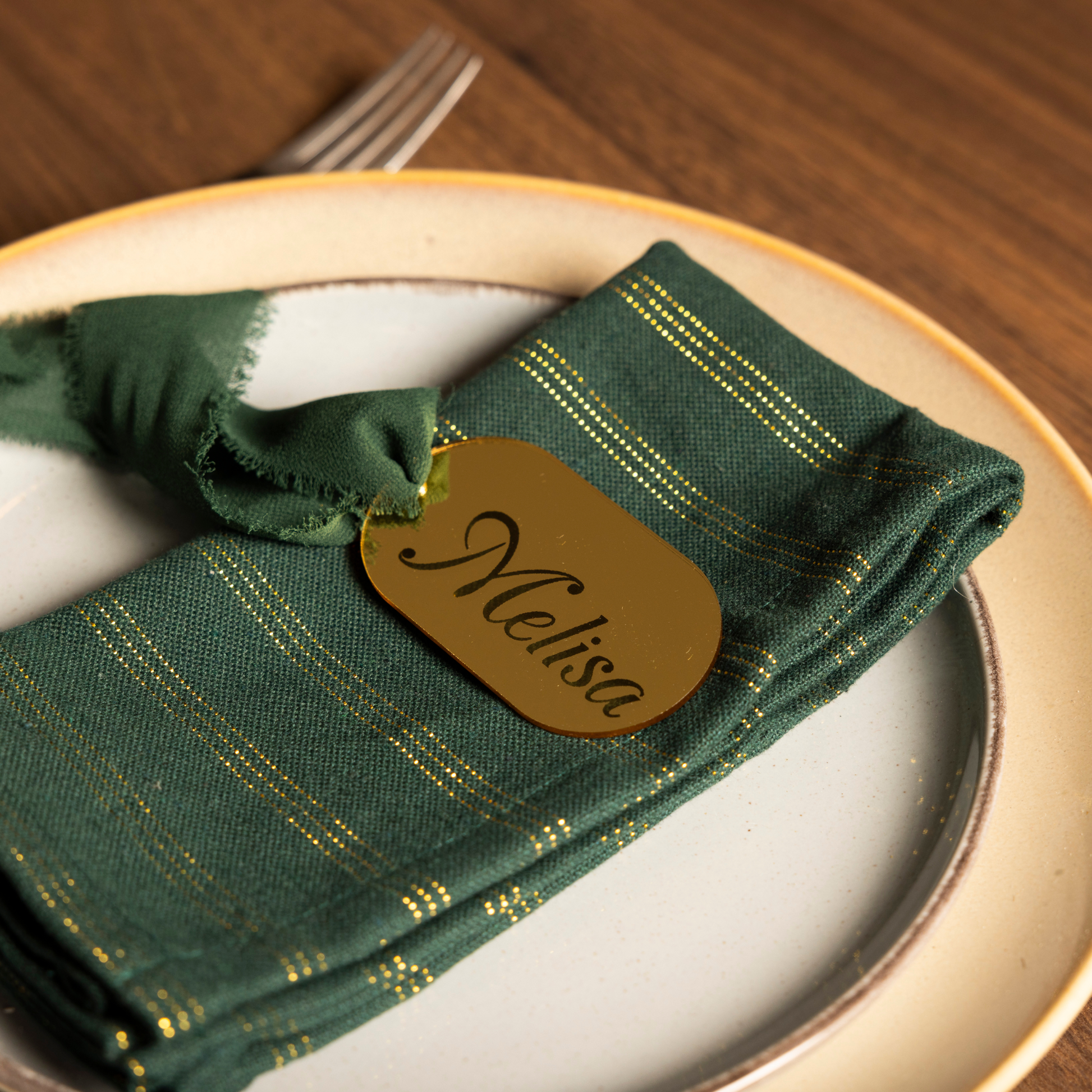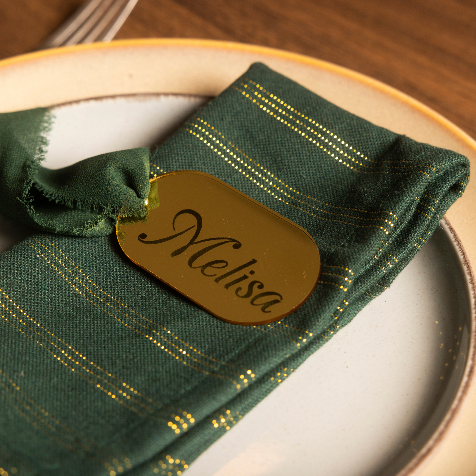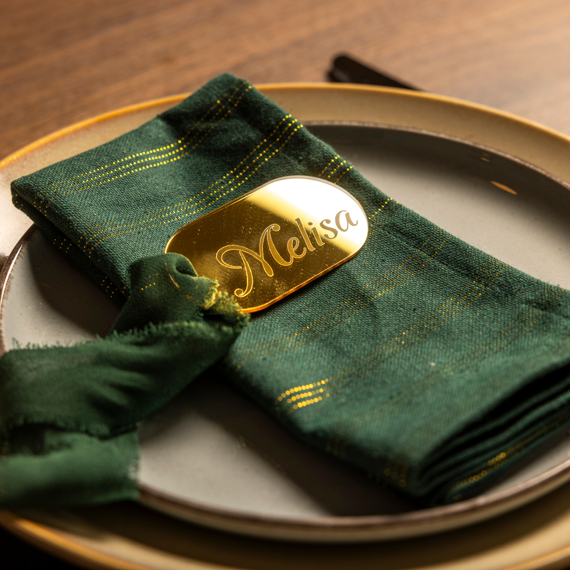 Diese goldenen Spiegel-Acryl-Namensschilder sind der perfekte Blickfang für jede Tischdekoration – ob zu Weihnachten, Hochzeiten oder besonderen Feiern.
