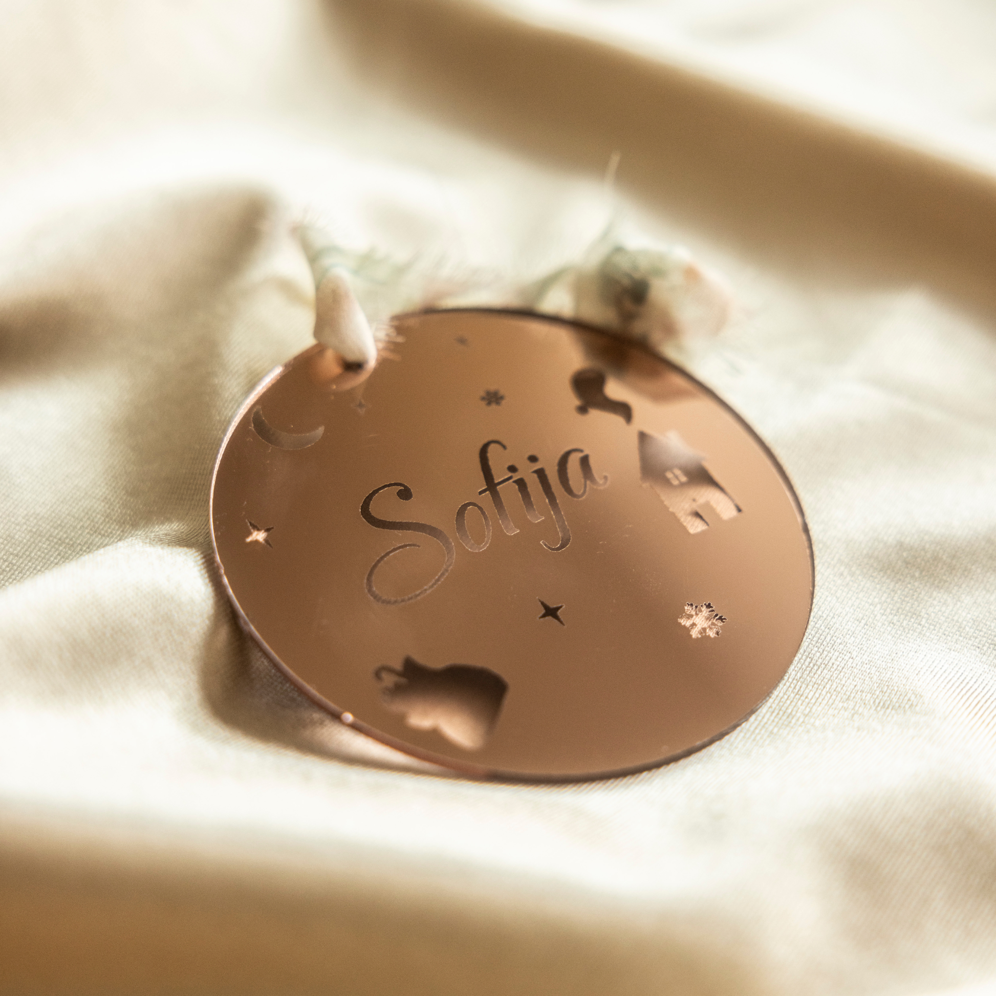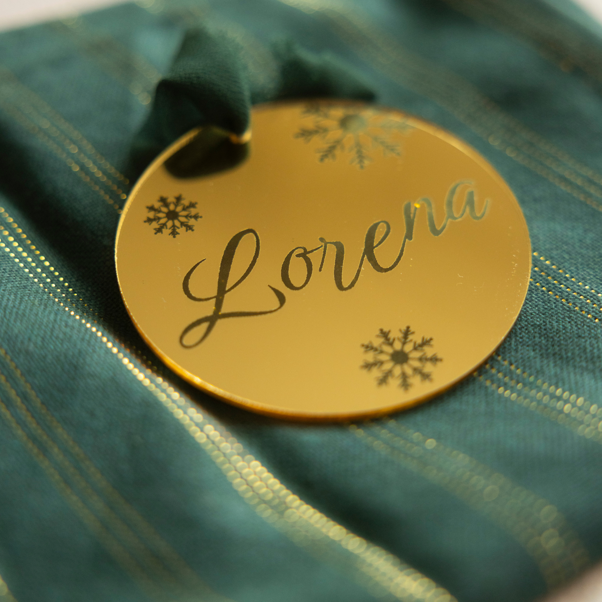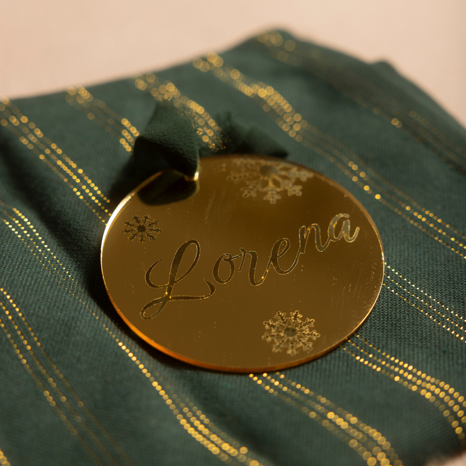 Mit zarter Gravur und personalisiertem Namen ist sie das perfekte Detail für eine liebevoll gedeckte Tafel, als Geschenkanhänger oder als stilvolle Weihnachtsbaumkugel.